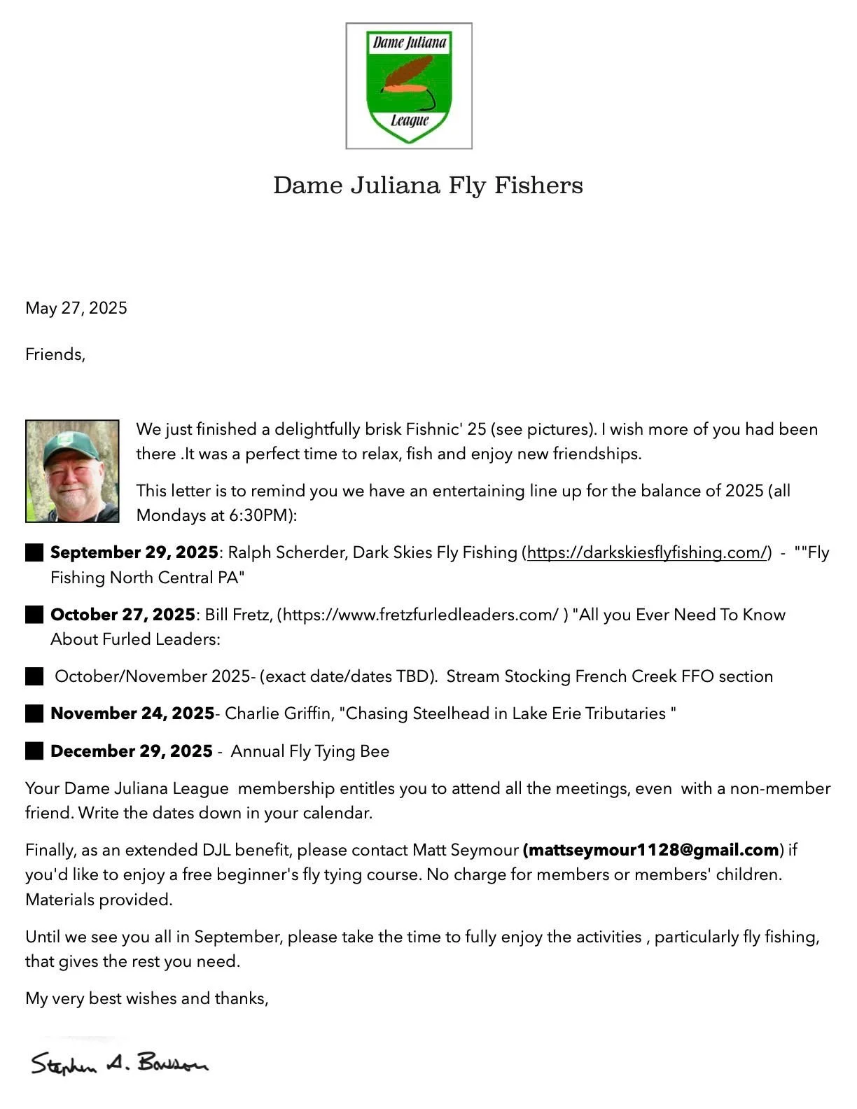 Events Mark your calendars for Otober 27!Come and bring a guest! Pictures From Our Annual Fishnic ‘25 (May 19,2025)